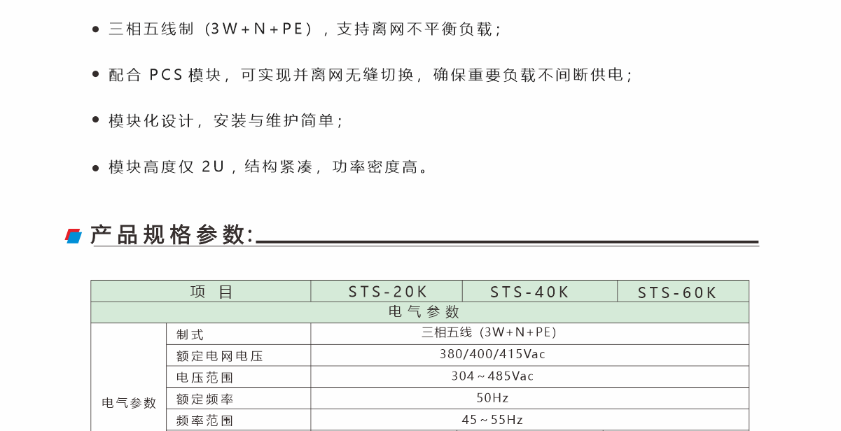 該并離網(wǎng)切換 STS 模塊采用靜態(tài)開(kāi)關(guān)無(wú)縫切換技術(shù),支持并離網(wǎng)無(wú)縫切換;采用 DSP 設(shè)計(jì),支持 CAN RS485 通信。該模塊廣泛應(yīng)用于并離網(wǎng)切換的應(yīng)用場(chǎng)景,如弱電網(wǎng)區(qū)域、微 電網(wǎng)儲(chǔ)能等