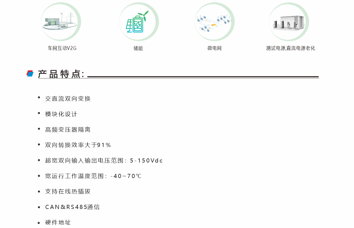 BIM15060是一個(gè)單相AC DC雙向變換器,直接連接電網(wǎng)和電池,電網(wǎng)通過該變換器能夠給電池充電,電池通過該變換器能夠放電到電網(wǎng)。具有高性能、高可靠性、高功率密度