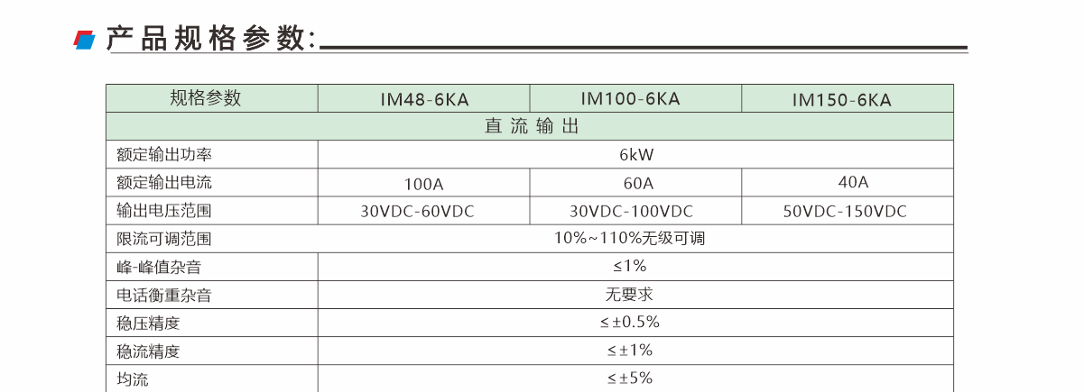 IM48-6KA 系列高頻開關(guān)整流模塊為交流電壓輸入,直流電壓輸出可調(diào)的 ACDC 模塊。模塊具有功 率密度高,功率因數(shù)高,諧波小,效率高等特點,具備多模塊可并聯(lián)性能。