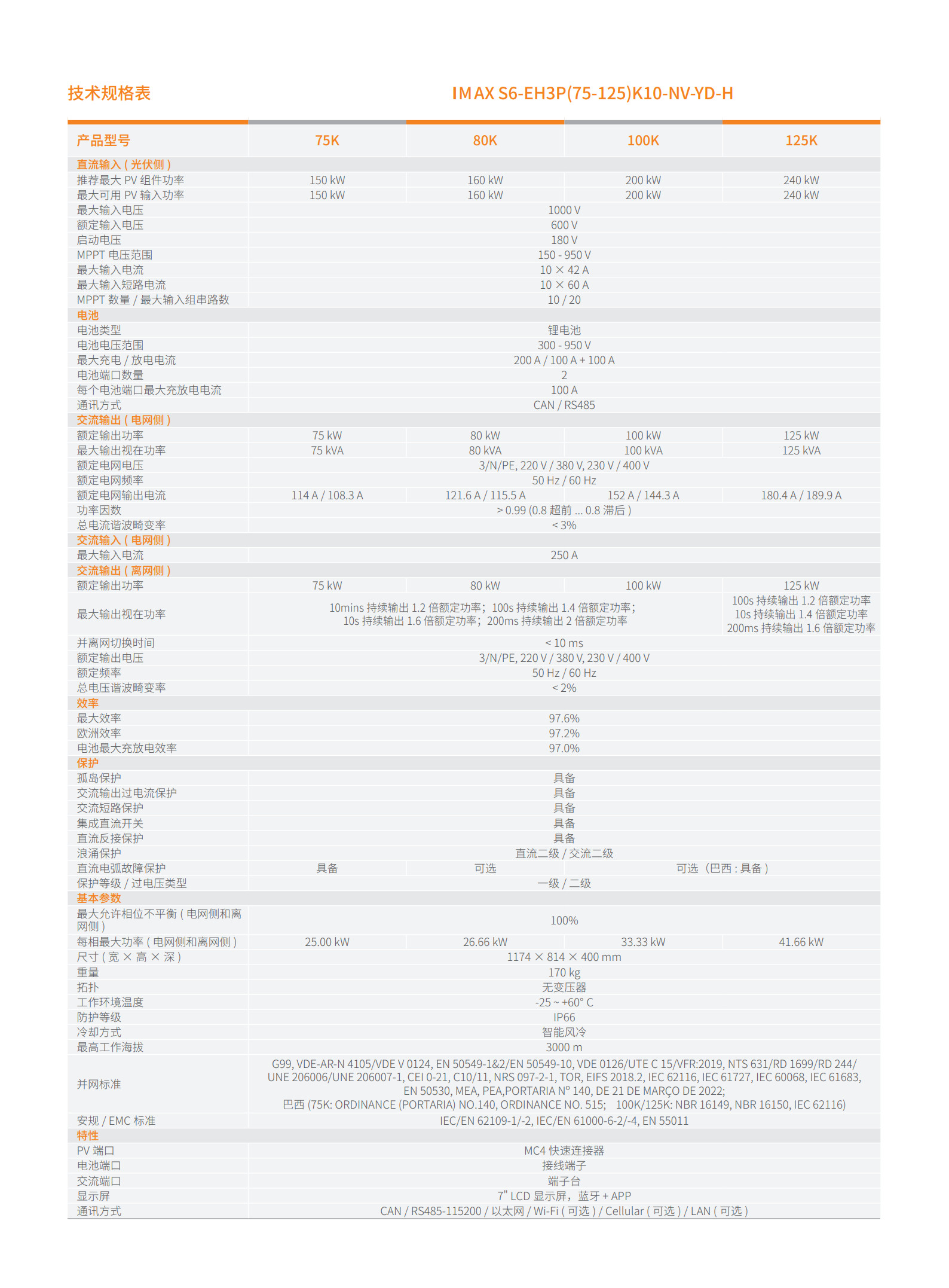 該系列光儲逆變器產(chǎn)品額定輸出功率高達125kW,處于業(yè)界領(lǐng)先水平。這一強大的功率輸出能力,能夠充分滿足工商業(yè)場景下各類大功率設(shè)備的用電需求,確保生產(chǎn)運營的穩(wěn)定進行。