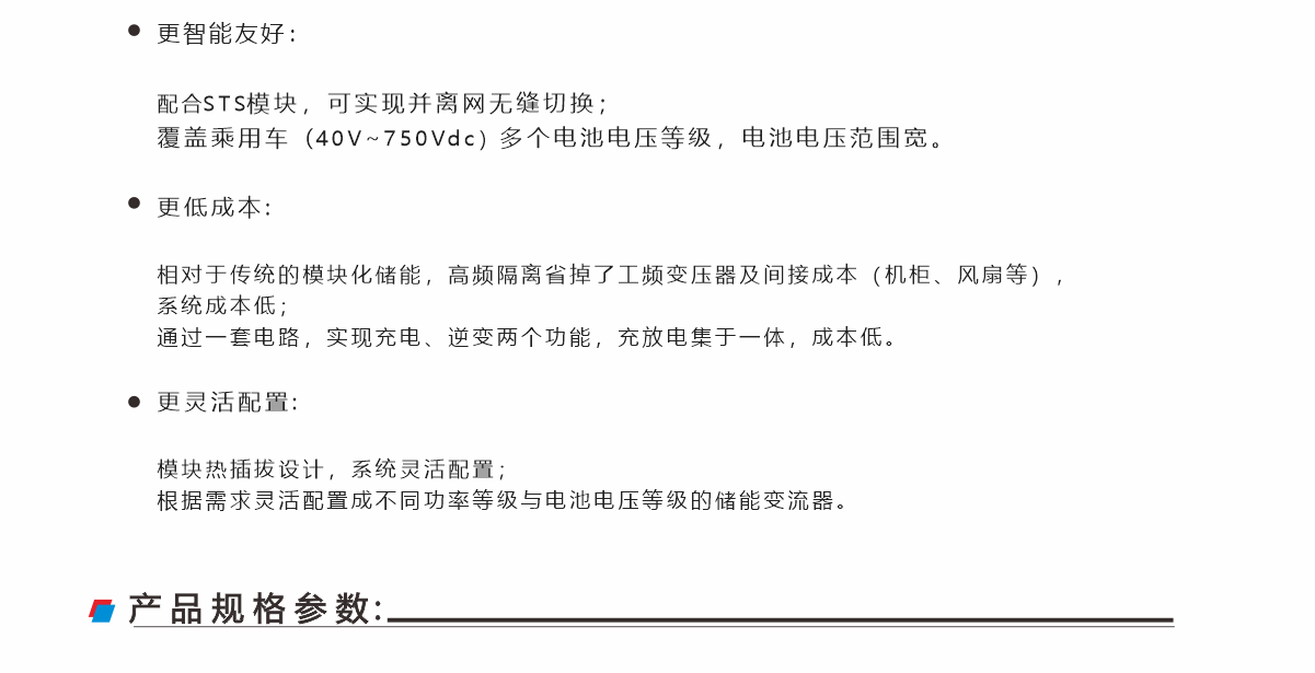 BIM75040-250K模塊化儲能PCS變流器,用雙向高頻隔離ACDC 模塊構(gòu)建而成,兼有高頻隔離與模塊化的優(yōu)點,機(jī)柜 兼 容AIM75040 與 AIM300100模塊,根據(jù)需求靈活配置成不同功率等級與不同電池電壓