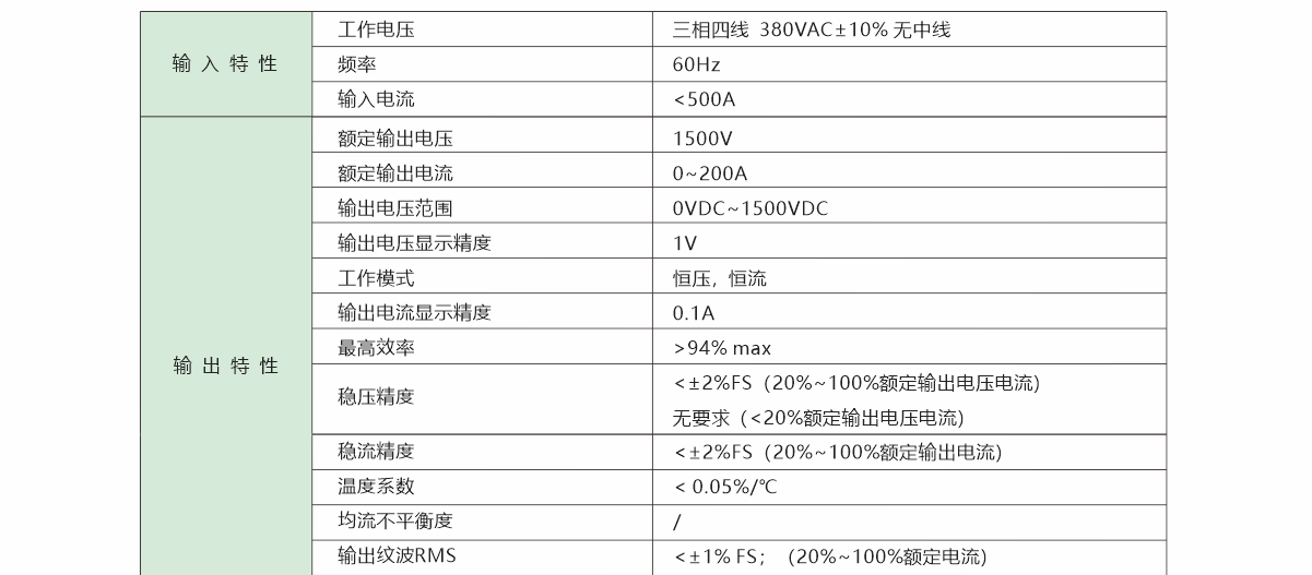 該電源為程控電壓電流源,為需要從0V起電壓電流源的情況而設(shè)計。電源采用高頻隔離設(shè)計,采用先進(jìn)的DSP控制,輸出電壓穩(wěn)定,不因輸入電壓波動而變化。輸出電壓0~1500V200A可調(diào)。