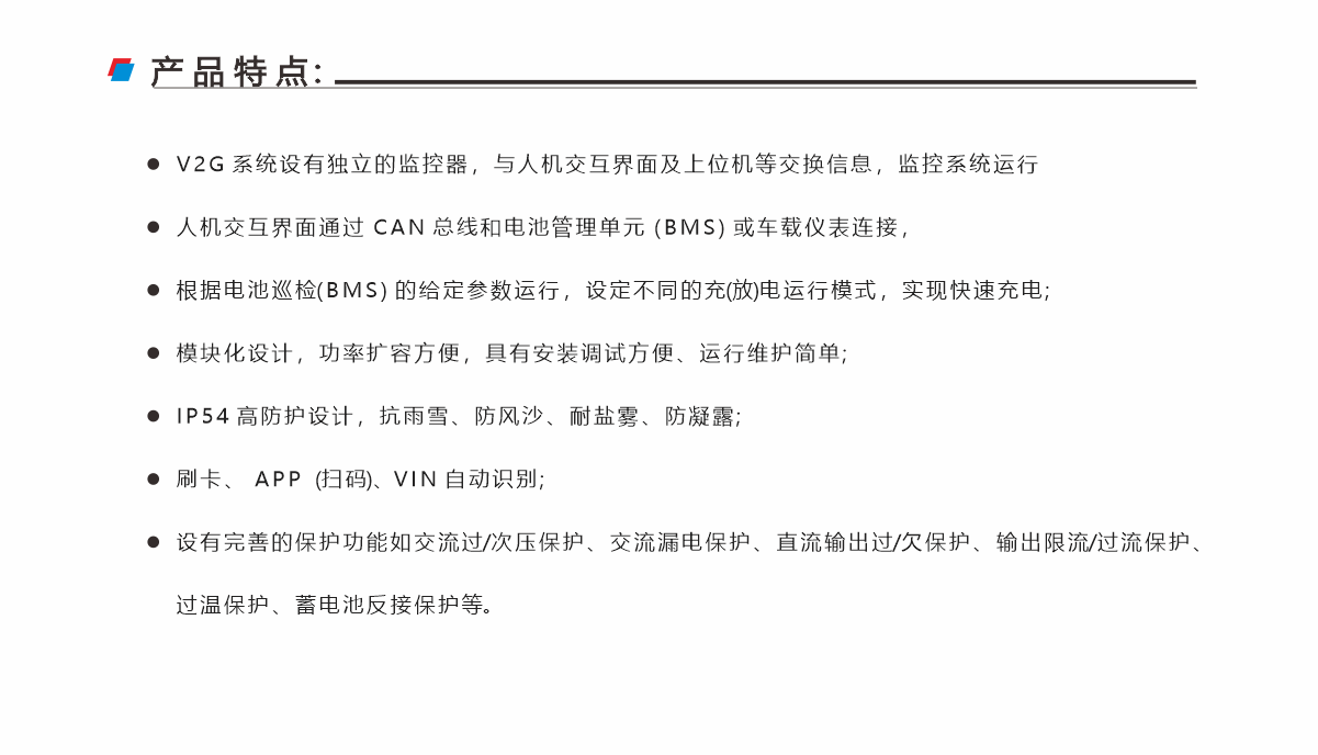 雙向ACDC樁主要由V2G模塊、監(jiān)控器、電度計(jì)量表、讀卡器、人機(jī)交互界面、通信模塊及充放電接口、執(zhí)行機(jī)構(gòu)和戶(hù)外柜體等部分組成。