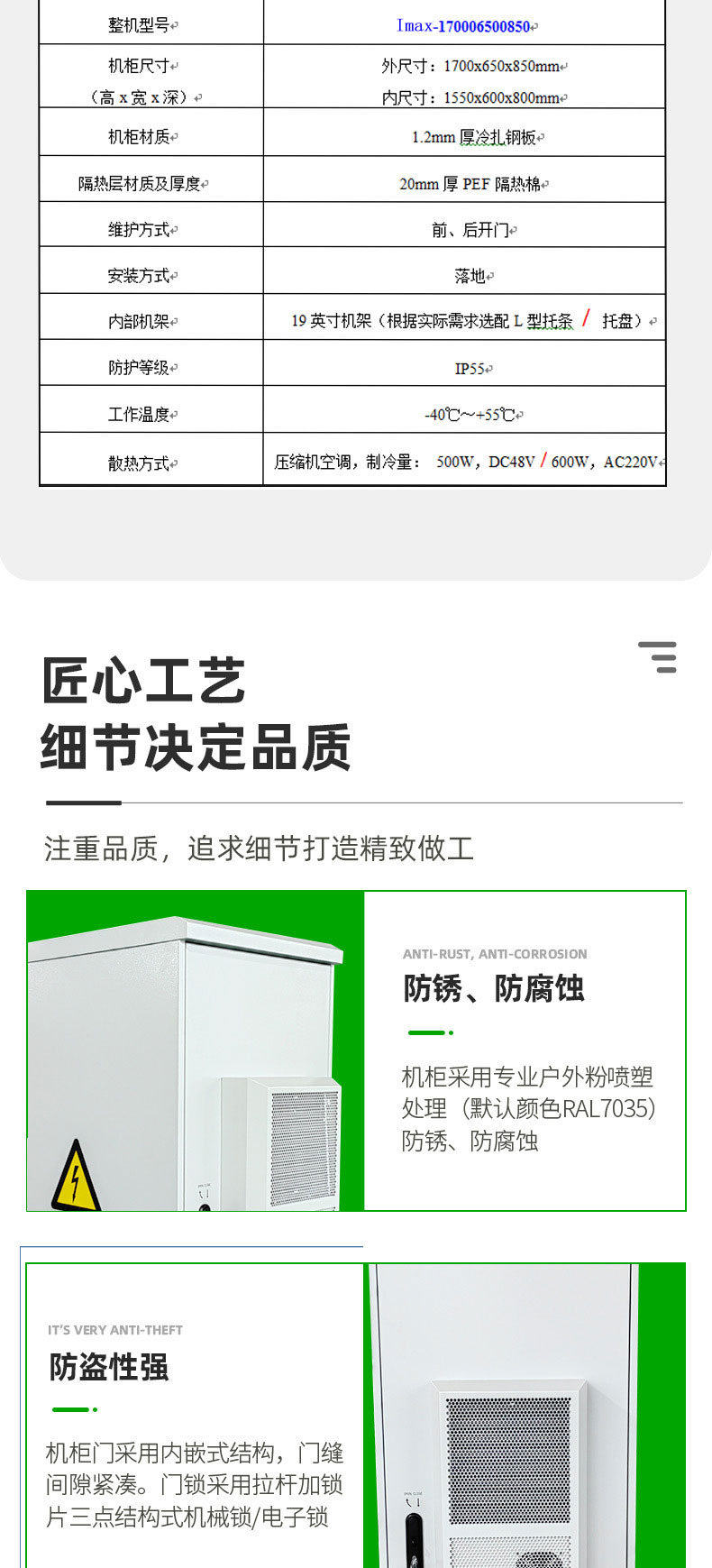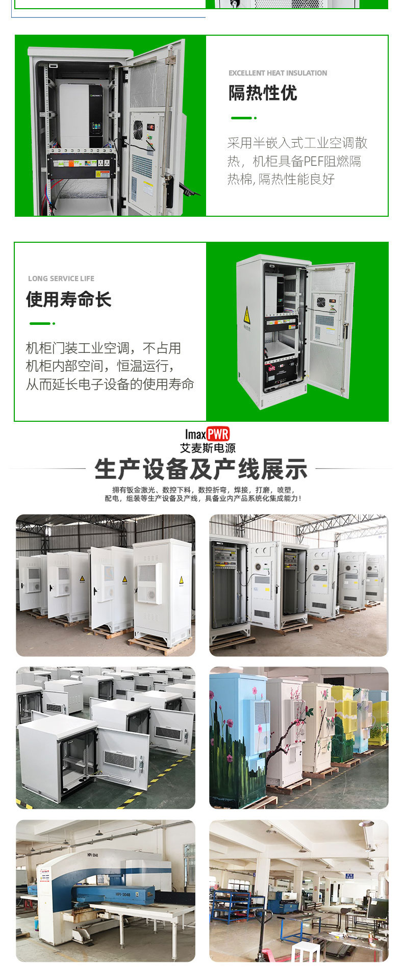 艾麥斯電源 215KWh 工商業(yè)儲(chǔ)能機(jī)柜由鈑金柜體、內(nèi)部電池架、電氣安裝板、電池倉(cāng) 3000W 交流空調(diào)、電氣倉(cāng)散熱風(fēng)扇、LED 照明燈、消防裝置等組成。整機(jī)防雨、防塵、抗腐蝕。
